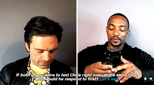 sharonncarter:Who is the better friend with Chris Evans?Who Will Chris Evans Text First, Anthony Mackie or Sebastian Stan? - Stir Crazy with Josh Horowitz -- source link