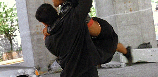 astarkey:“He made sure I was graceful, I looked good, my legs were straight, so he gave me pointers, but I worked with his fight choreographer for a month ‘cause it’s all me. No stunt double; that’s me flipping around.”Aaliyah on Han & Trish’s fighting scene in Romeo Must Die -- source link